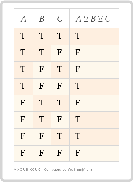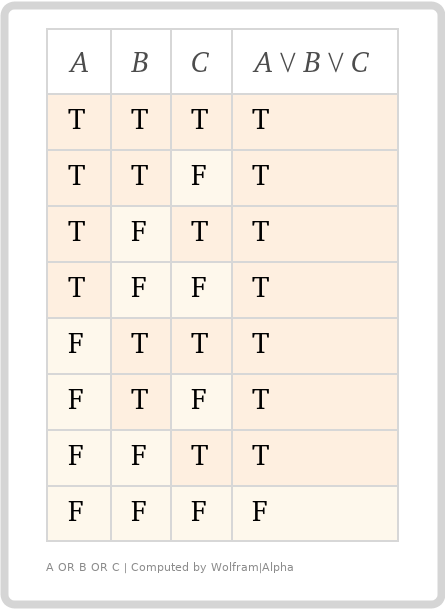 尖括号是高级数学符号,其中向上尖括号代表“AND”,向下尖括号代表“OR”。最右边一列代表基于标题中布尔逻辑的整体断言结果。